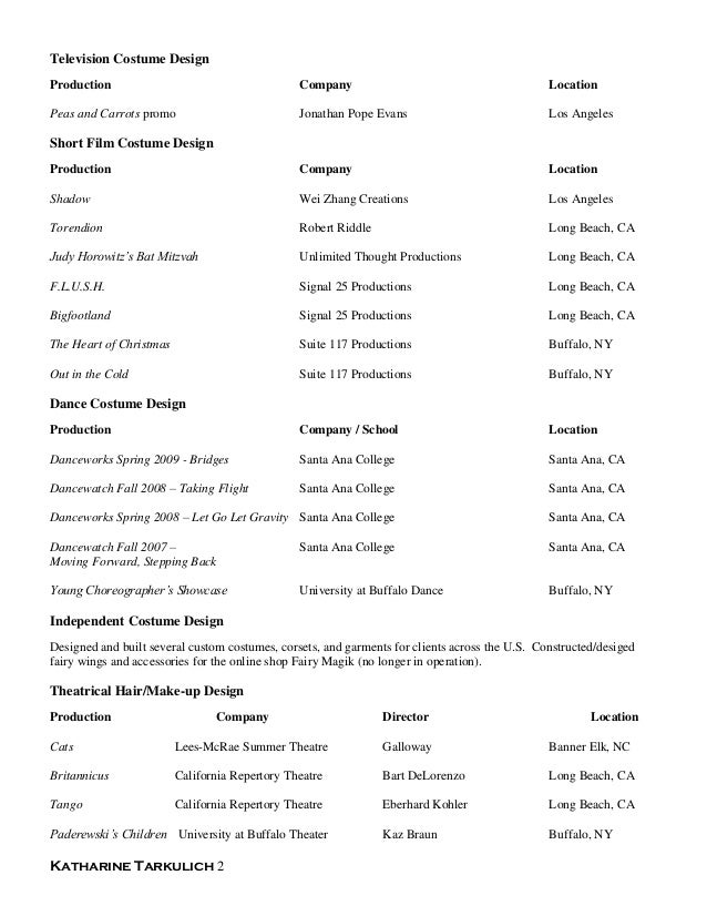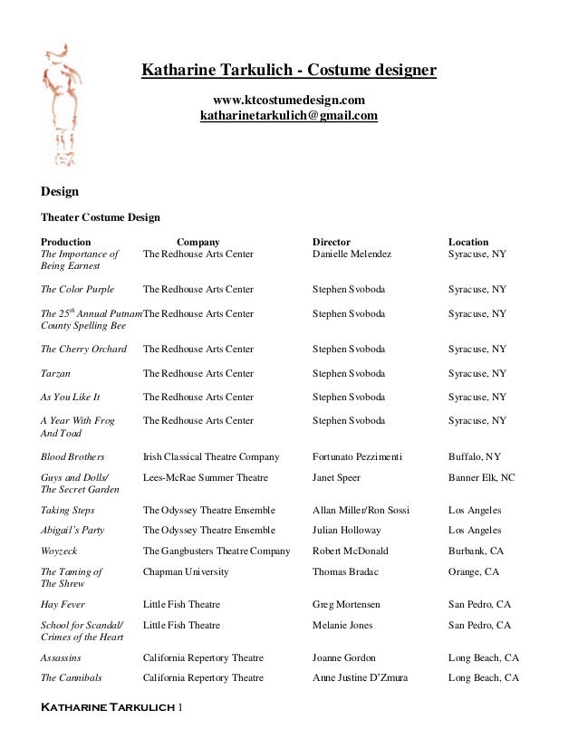 suggestion: costume design resume
